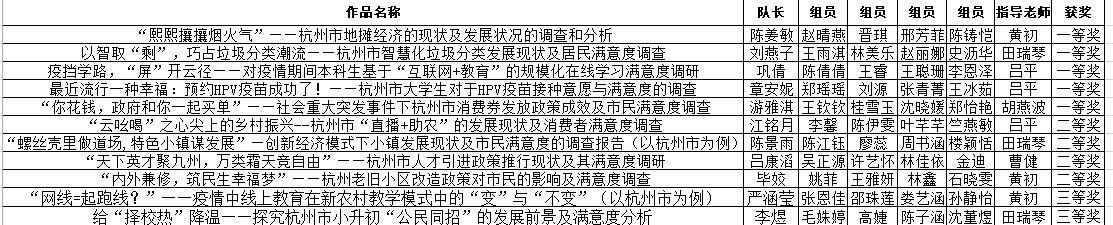 浙江省大学生统计调查方案设计大赛由省教育厅和省统计局主办,每年举行一次。该项赛事以“深入实际,调研社会”为主题,旨在通过统计调查方案的精心设计,数据的采集、整理和分析,现场PPT的完美展示和问题的巧妙回答,训练学生的动手能力、分析能力和思辨能力,从而培养出创新创业型的数字化人才,为数字浙江乃至数字中国建设输送更多人才。