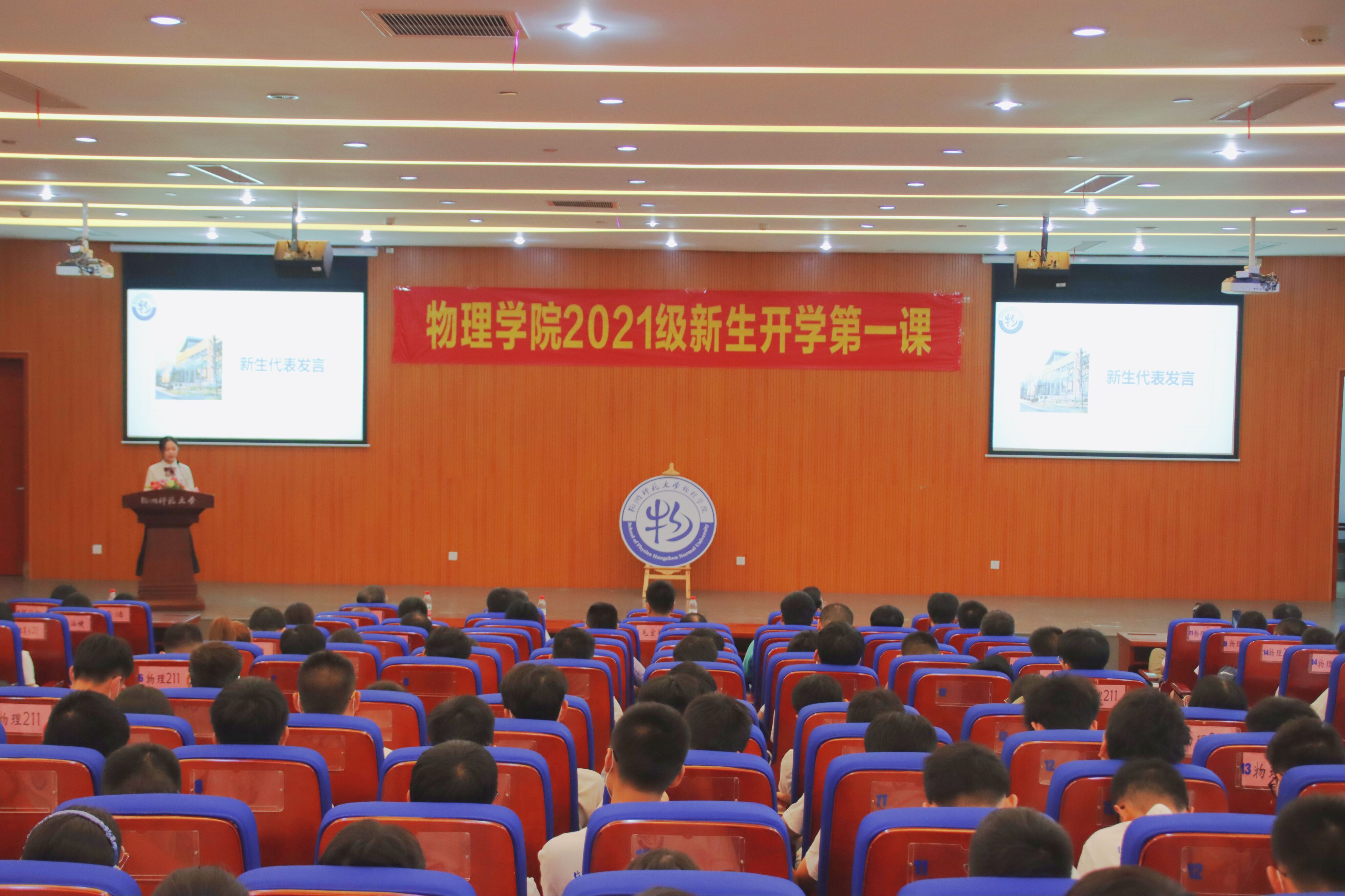 老生代表科教191班斯涵婕给学弟学妹们寄语,希望新生们能保持初心,大胆尝试,在尝试中收获成功。新生代表201班周琦发言,代表全体新生表达了对大学生活的美好憧憬,未来将自己的发展与国家结合在一起,从物理学院出发,追求卓越,绽放自我。