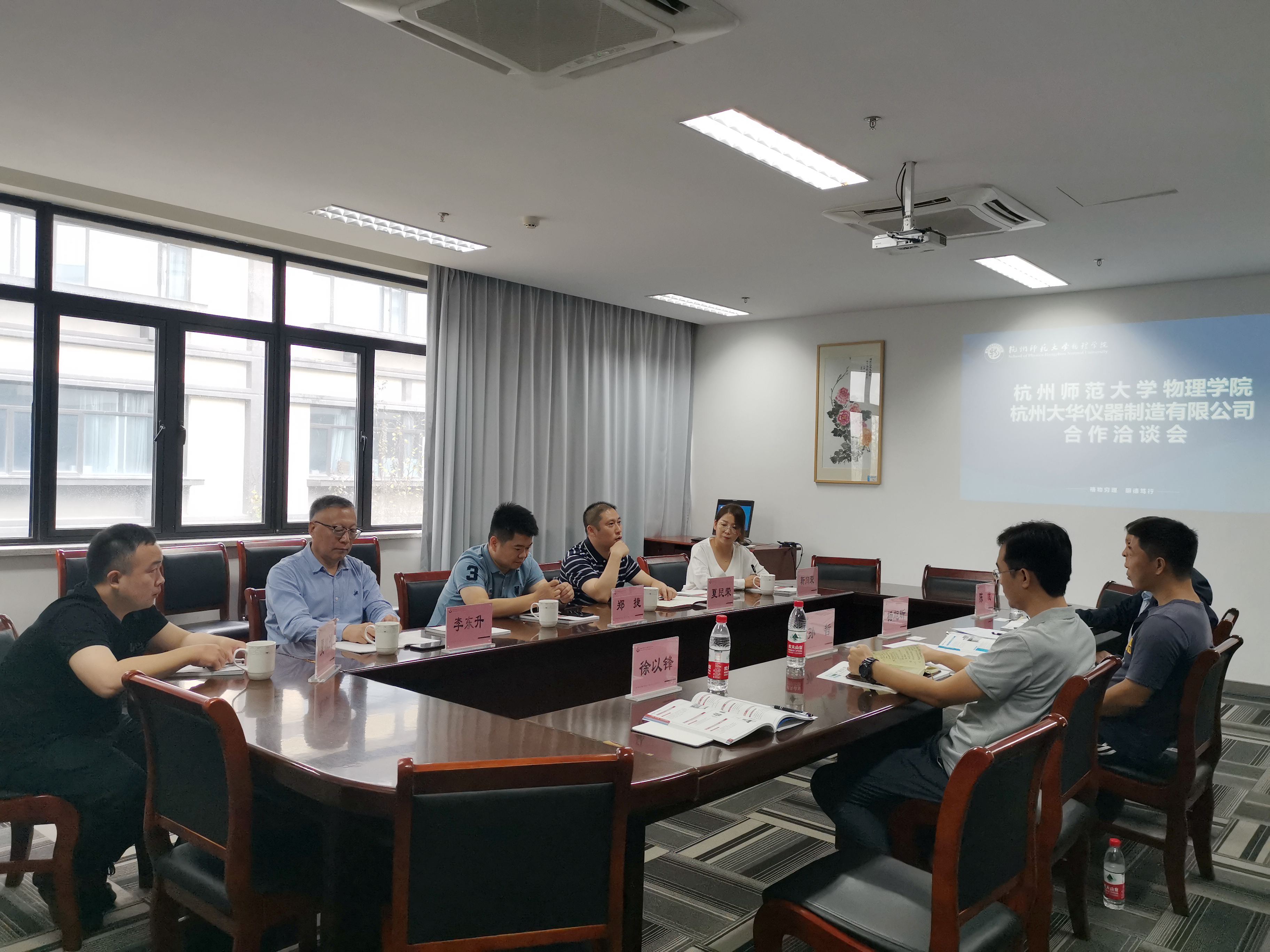 本次活动旨在进一步推进学院同企业之间的合作与交流,进一步推进物理实验教学仪器的“产学研”一体化发展。副院长孙哲就当前物理学院实验室规模、未来发展方向和双方合作空间等发表了意见和建议;夏民荣总经理对杭州大华仪器制造有限公司的企业规模和重点研发方向进行了介绍;物理学院陈斌、徐以锋、杨旭昕与企业代表就合作机制等具体事宜进行了讨论。双方达成一致,为后期持续深化合作奠定了良好基础。