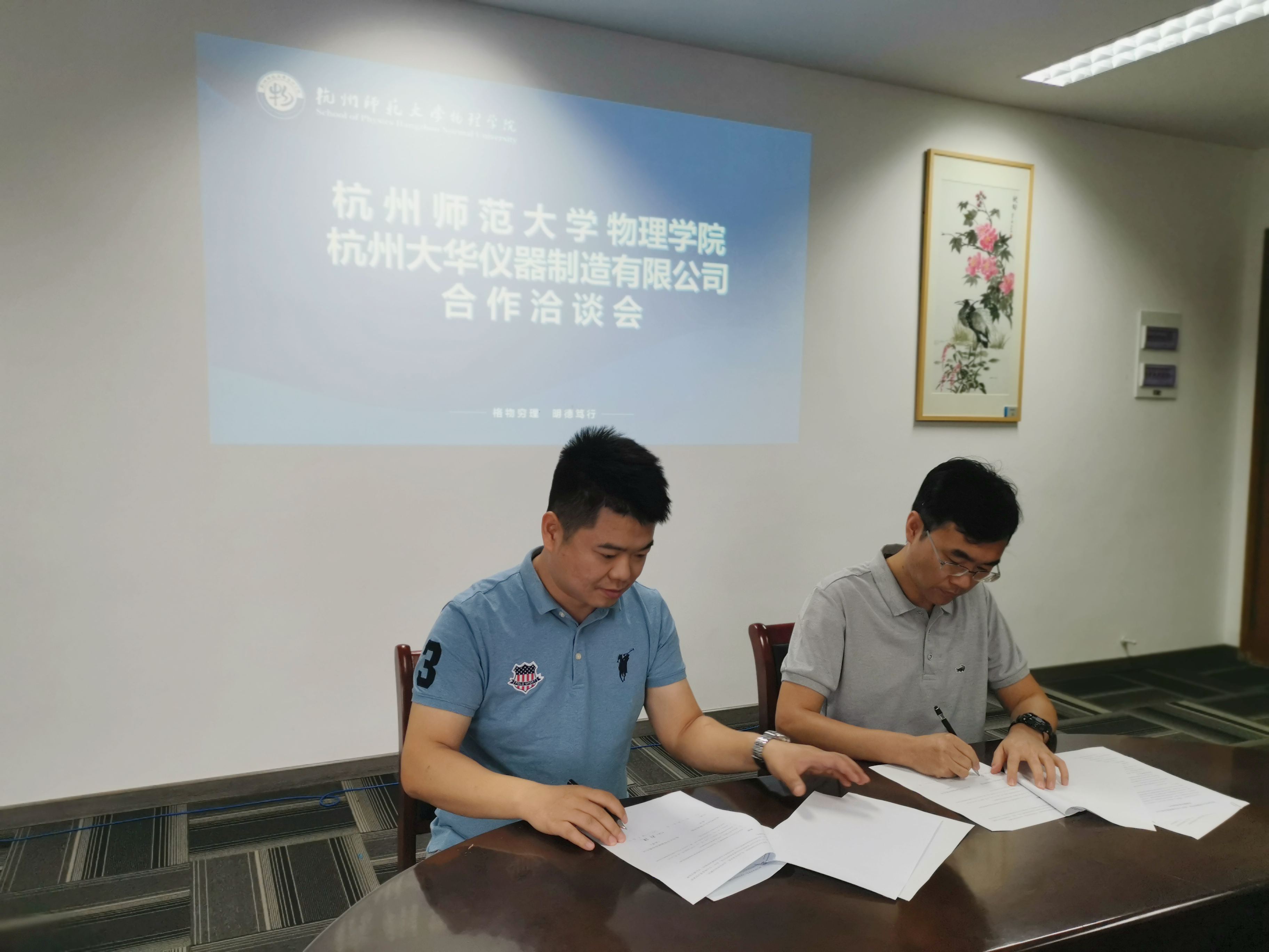 10月11日,我院与杭州大华仪器制造有限公司校企合作交流洽谈会暨实践教学基地协议签约仪式在学院党员之家隆重举行。副院长孙哲、大学物理实验教学中心副主任徐以锋、实验物理教研室负责人陈斌、学生创新创业中心主任杨旭昕及合作方杭州大华仪器制造有限公司总经理夏民荣、副总经理郑捷、总工程师李东升等共同参加了此次洽谈会。