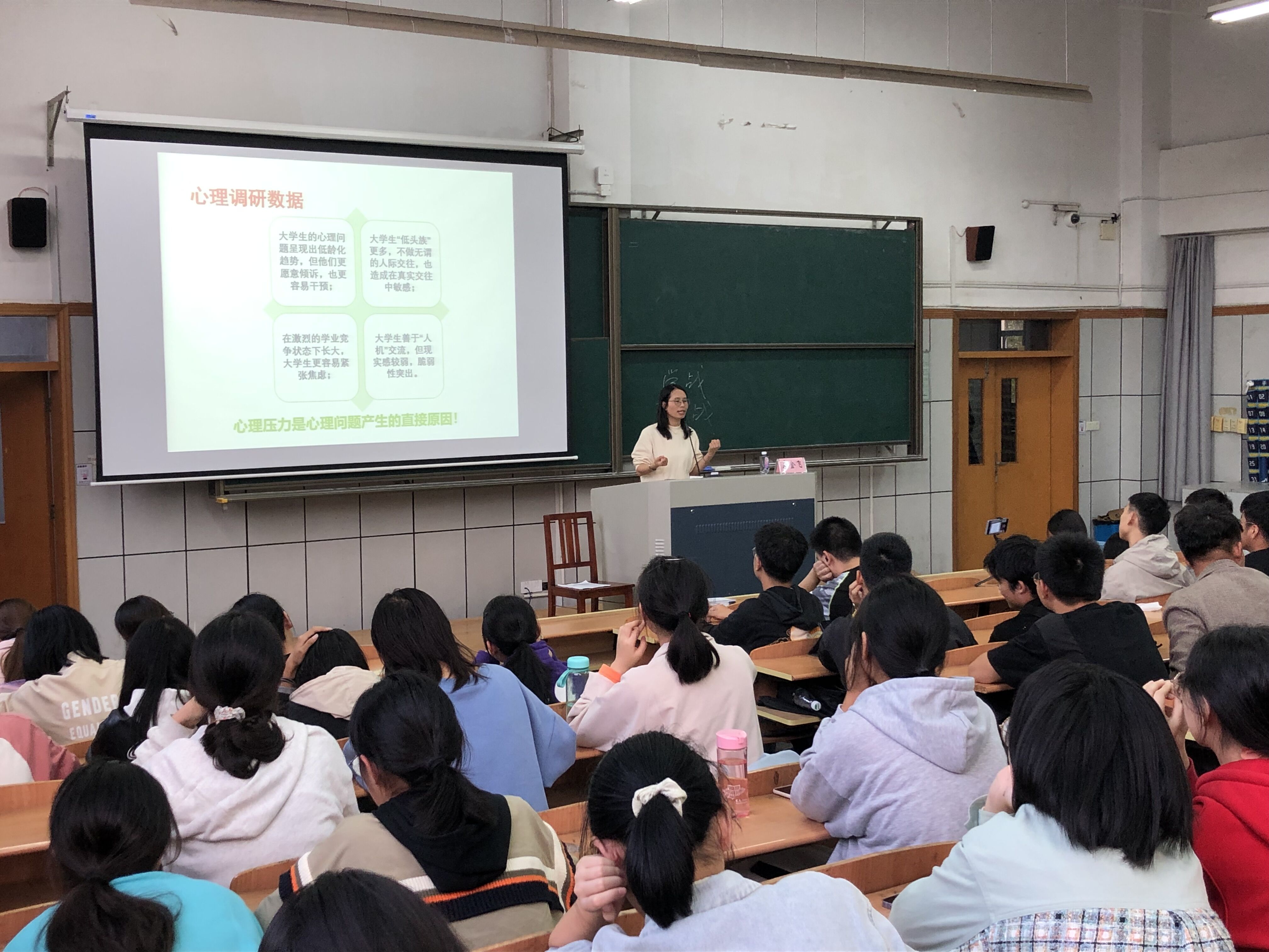 讲座开始,应老师便简明扼要地指出人际关系是影响大学四年生活质量的重要因素,从而引出了人际交往的重要性。