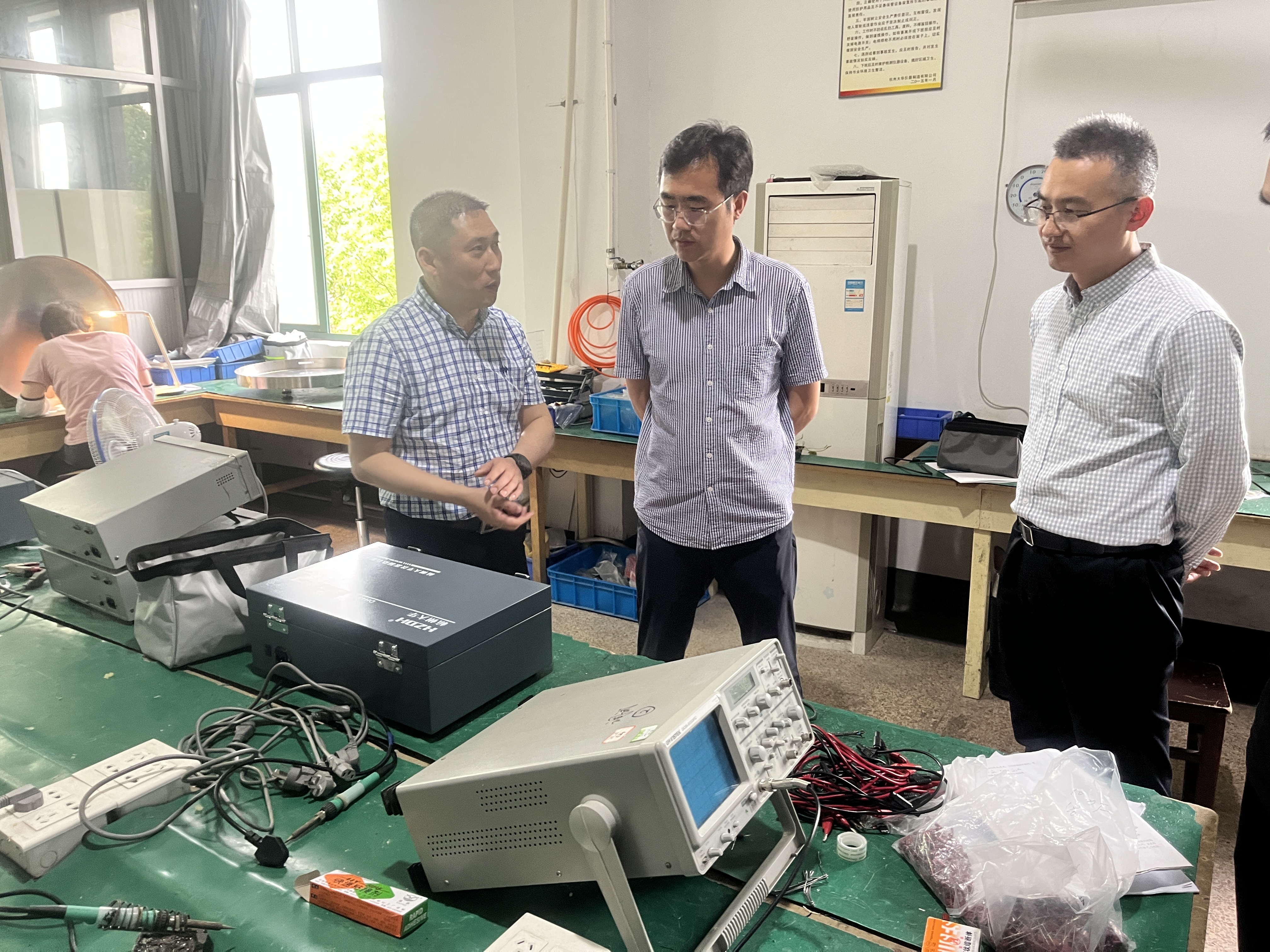 孙院长一行还参观了大华仪器制造有限公司生产车间,并就大学物理实验教具的研发进行了深度交流。
