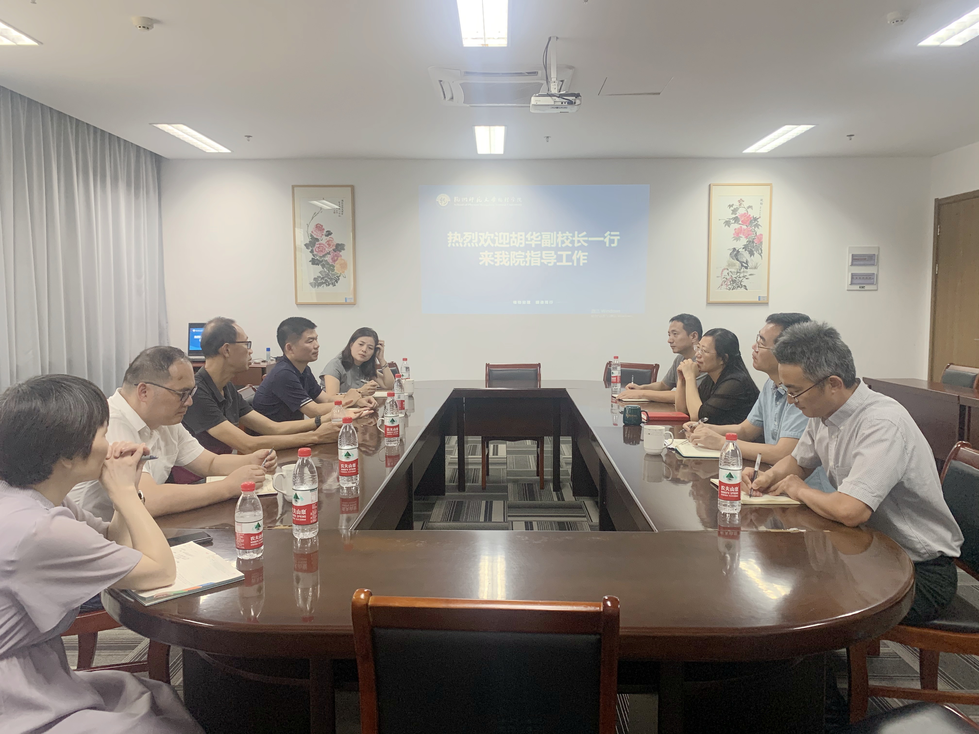 8月31日,副校长胡华在实验室与设备管理处处长尹守春、教务处副处长单振宇等人的陪同下来到学院,检查新学期开学准备工作。学院全体领导陪同并参与座谈。