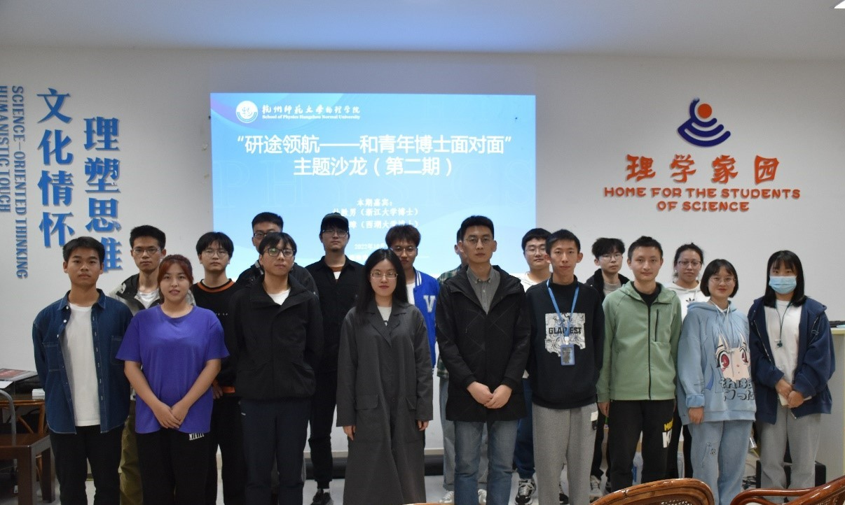 2022年10月30日14:00,由我院研究生会主办的第二期“研途领航——和青年博士面对面”主题沙龙在勤园19号楼理学家园如期开展。本次活动邀请到了我院2020届硕士研究生、现于西湖大学读博的杨武璋和在浙江大学读博的杜胜男主讲。两位校友作为我院的优秀毕业生,与现场同学分享了他们在硕士期间的考博历程和博士期间的学习生活。