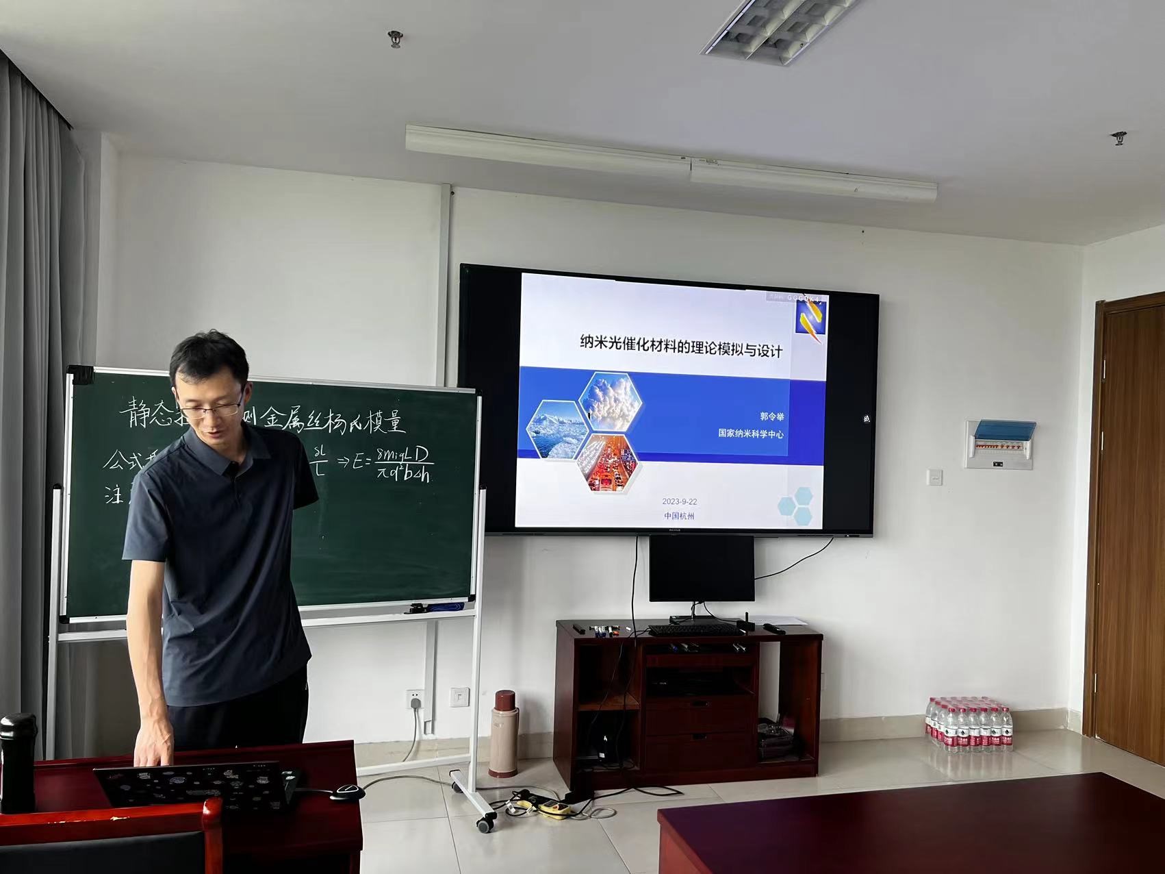 9月22日下午,中国科学院国家纳米科学中心研究员郭令举应邀来我院开展题为“纳米光催化材料的理论模拟与设计”的学术报告。利用光催化技术将太阳能转化为化学能是缓解能源危机和减少碳排放的有效途径之一。目前,光催化材料的实际应用仍面临着催化效率低、选择性和稳定性差等诸多问题,郭老师团队基于第一性原理研究深入理解了一些重要光催化过程的机理,进而为实验设计新型催化剂提供了方向和信息。报告中他从光催化材料的光吸收、稳定性和表面反应机理几个方面出发,介绍课题组近年来在光催化材料理论模拟与设计方面所做的一系列工作。此外,他还介绍了课题组最新开发的纳米科技与产业大数据平台。这一平台的建设将极大加快纳米材料领域的研发和成果转化速度,对纳米领域有颠覆性影响。物理学院多名师生参加了本次学术报告。会后我们与郭教授进行了深入的探讨、交流以及商讨今后可能合作的机会。