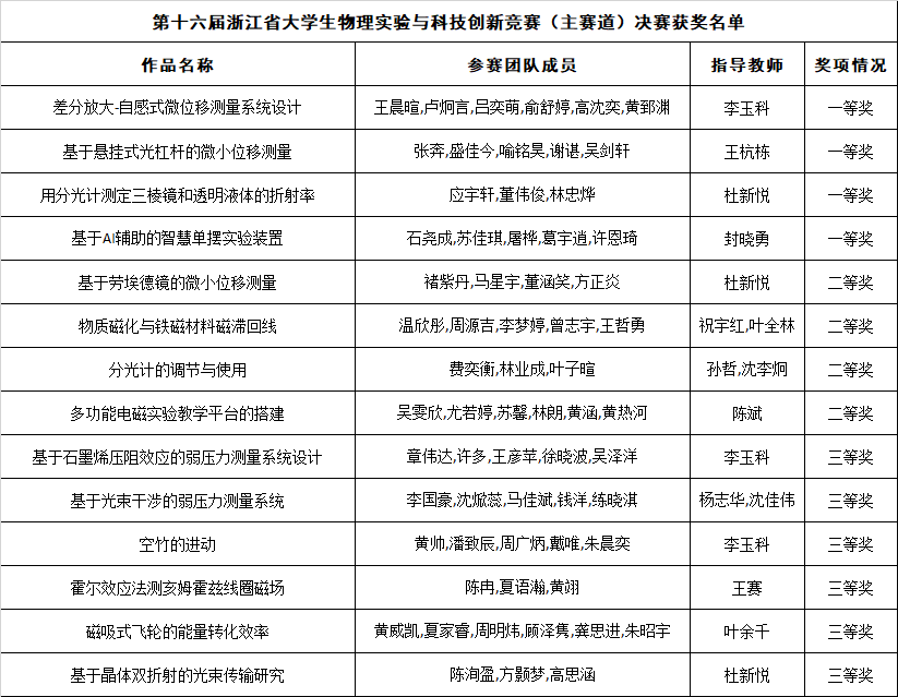 9月6日至7日,第十六届浙江省大学生物理实验与科技创新竞赛(主赛道)决赛在浙江海洋大学长峙校区顺利举办。我院14支团队表现出色,共取得一等奖4项、二等奖4项和三等奖6项的好成绩!