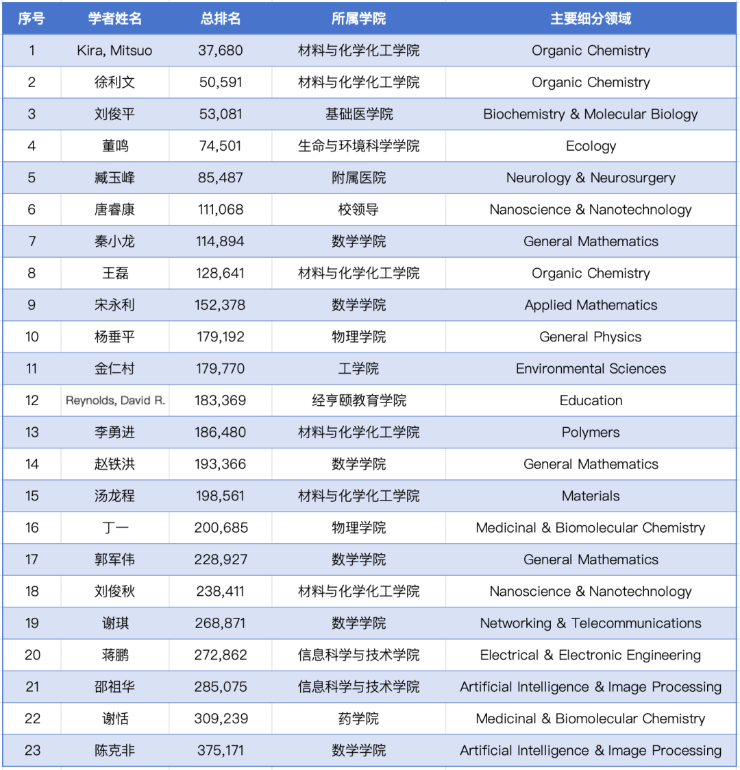 据了解,全球前2%顶尖科学家榜单分为“终身科学影响力排行榜(Career-long Impact)”和“年度科学影响力排行榜(Single-year Impact)”两大部分,从全球近700万名科学家中,通过基于其论文引用数、h因子、合著者修正的hm因子、单独或第一作者的文章引用数等综合参数,遴选出世界排名前2%的科学家,涵盖22个领域和174个子领域。其中,“终身影响力”榜单统计科学家职业生涯期间的综合表现,“年度影响力”榜单则聚焦上一年度的学术影响力。