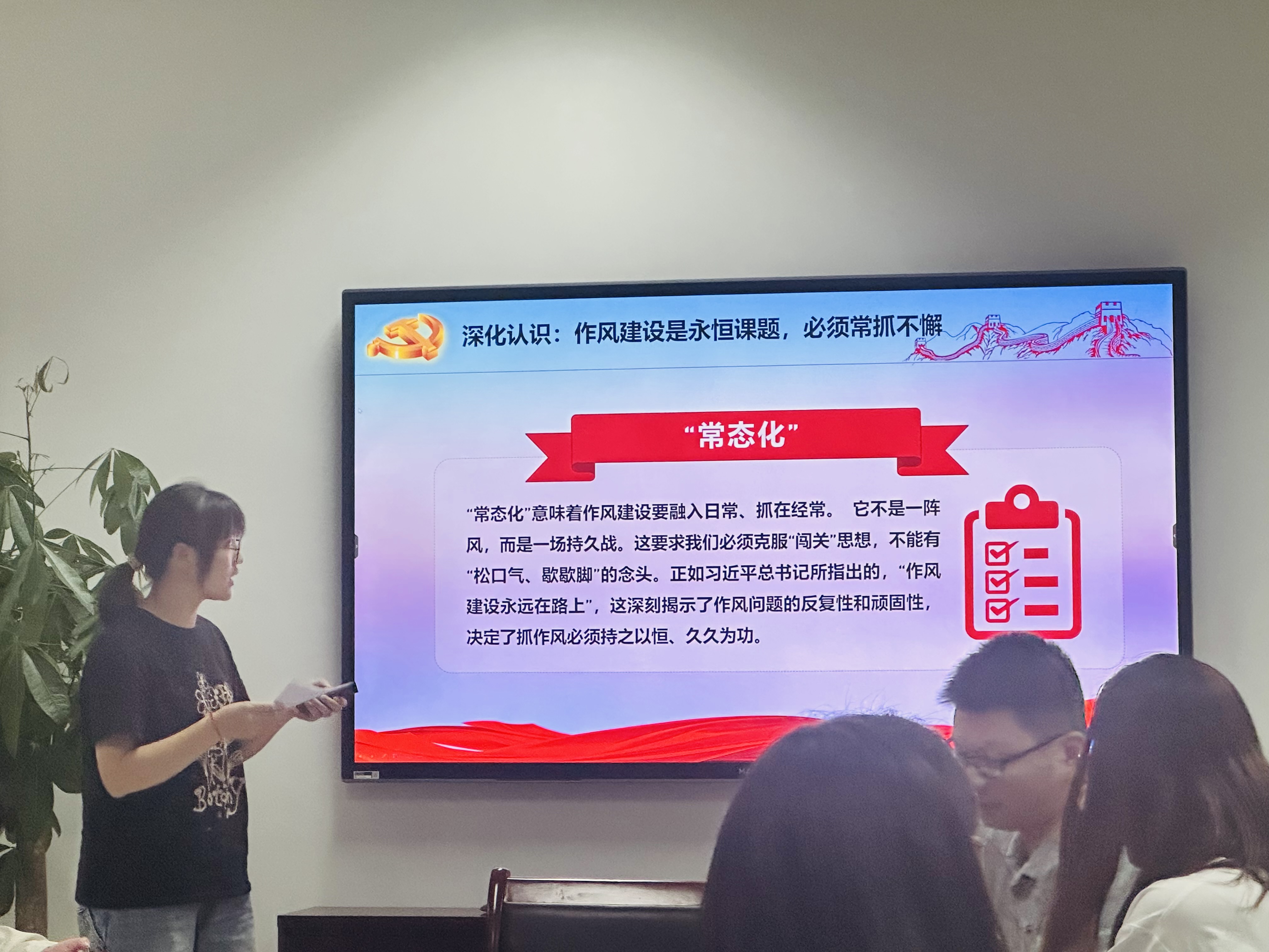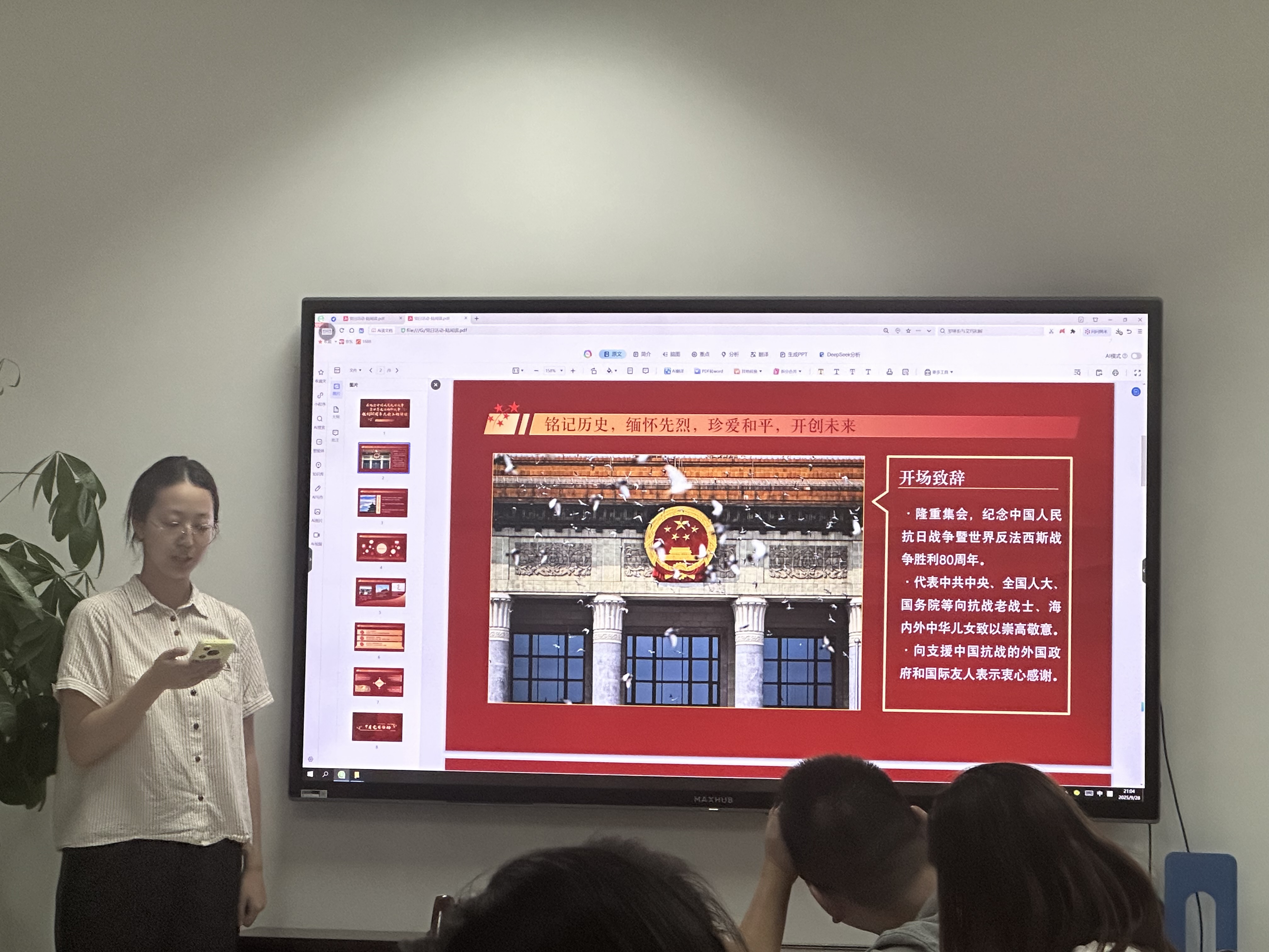 一是召开九月党日活动,陆闻琪、李佩佩分享了她们的心得体会。陆闻琪分享了学习“习近平在纪念中国人民抗日战争暨世界反法西斯战争胜利80周年大会上的讲话”的体会,她认识到人类命运休戚与共,只有守望相助、和睦相处,才能避免历史悲剧重演,同时要传承伟大抗战精神,以踔厉奋发、勇毅前行的姿态,全面推进中国式现代化和民族复兴伟业;李佩佩围绕“理解常态化长效化的时代内涵与重大意义”、“认清作风建设与我们成长成才的密切关系”、“探讨作为一名学生党员该如何践行与担当”三个方面,分享了自己对“习近平关于加强党的作风建设论述摘编”的学习心得。本次学习汇报后,党员们对于伟大抗战精神、党的作风建设有了更加深入的认识。