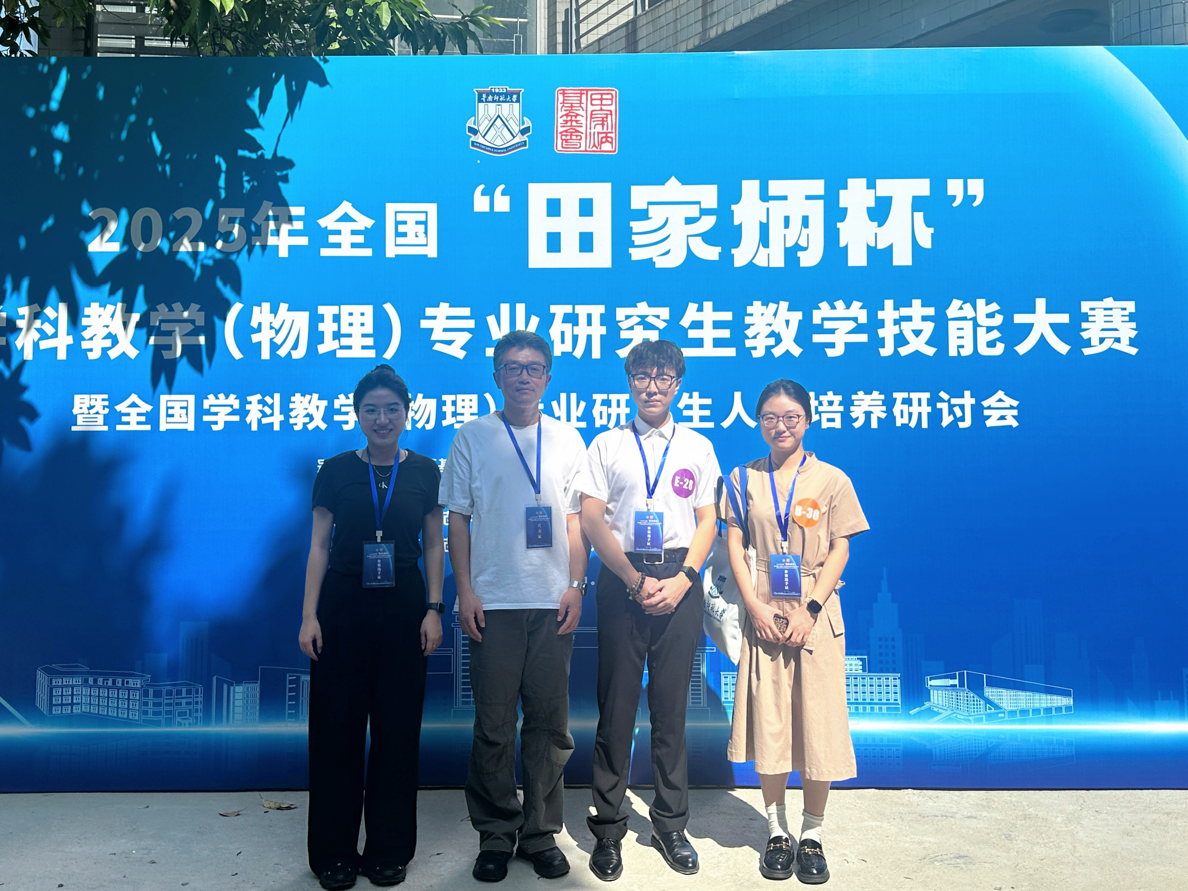 2025年11月6日至9日,2025年全国“田家炳杯”全日制教育硕士专业学位学科教学(物理)专业研究生教学技能大赛决赛暨全国学科教学(物理)专业研究生人才培养研讨会,在华南师范大学大学城校区圆满落幕。我院2024级5名硕士研究生凭借扎实的专业功底、精湛的教学技能与从容的现场表现,在全国78所高校的199名决赛选手的激烈角逐中脱颖而出,一举斩获一等奖1项、二等奖1项、三等奖3项,用实力彰显青春风采!