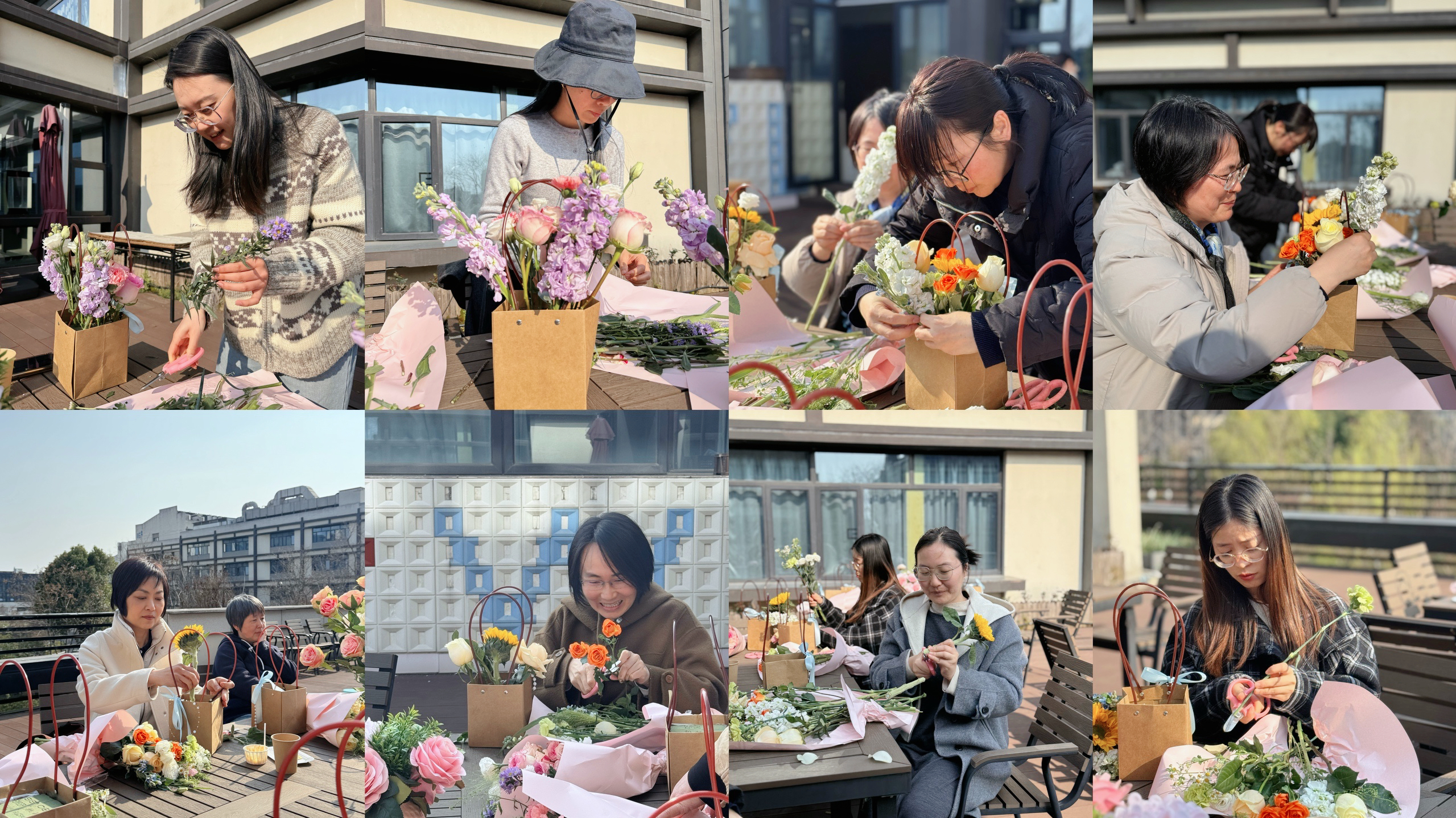 3月12日下午,春风和煦,阳光明媚。为庆祝“三八”国际劳动妇女节,丰富女教职工的精神文化生活,物理学院在学院露台举办了一场温馨有趣的插花活动,学院众多女教师齐聚一堂,在花香中共度美好时光。