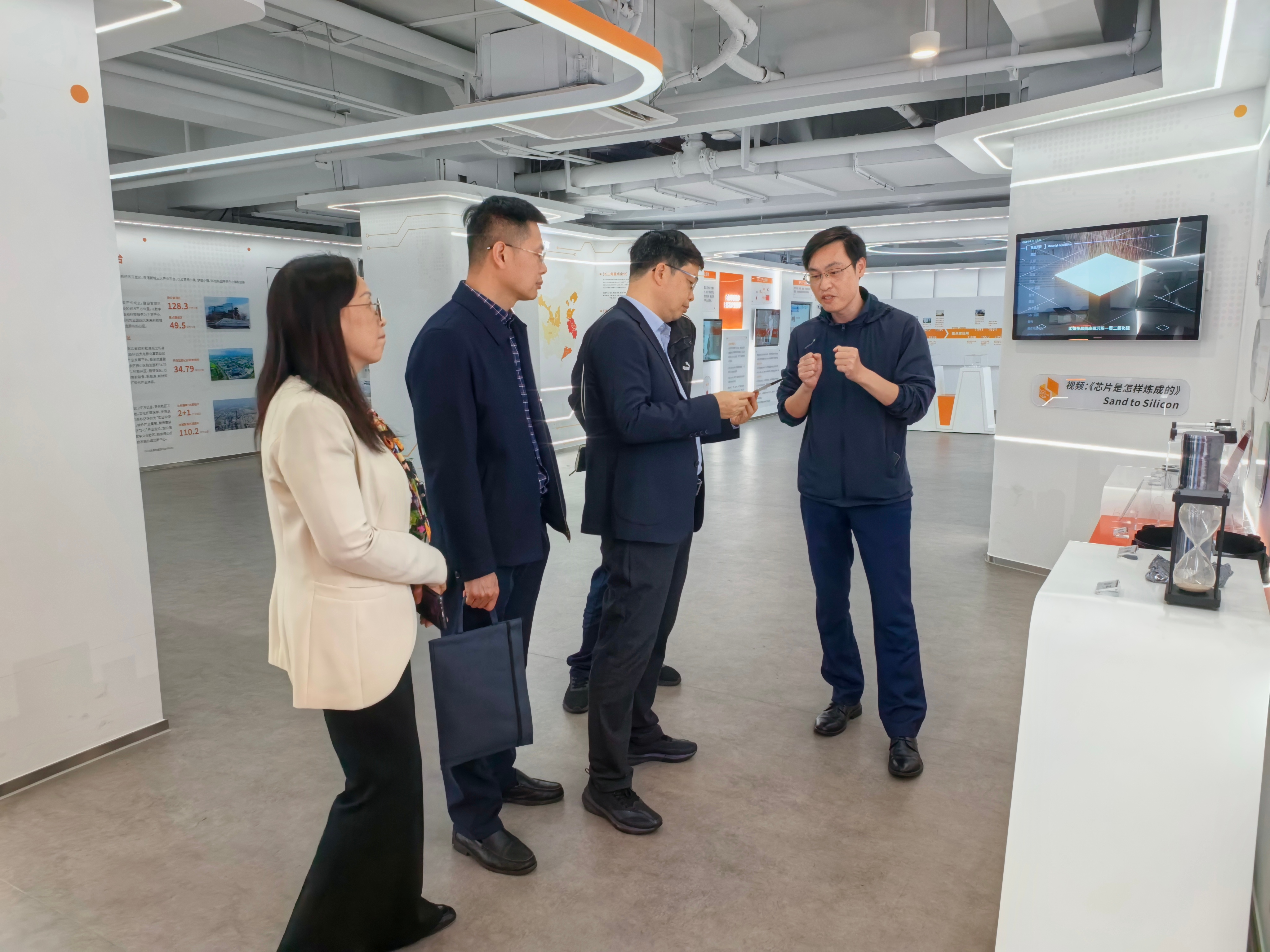 随后,大家来到杭州加速科技有限公司,参观半导体集成电路测试专业展厅。企业教育事业部经理李浩详细介绍了集成电路测试人才培养项目。双方就专业人才联合培养、毕业生就业输送、实践育人基地共建等议题展开探讨,着力打通从校园到职场的“最后一公里”。